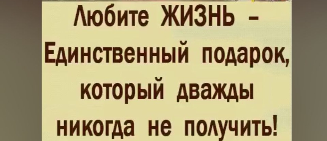 Любите жизнь — единственный подарок, который дважды никогда не получить