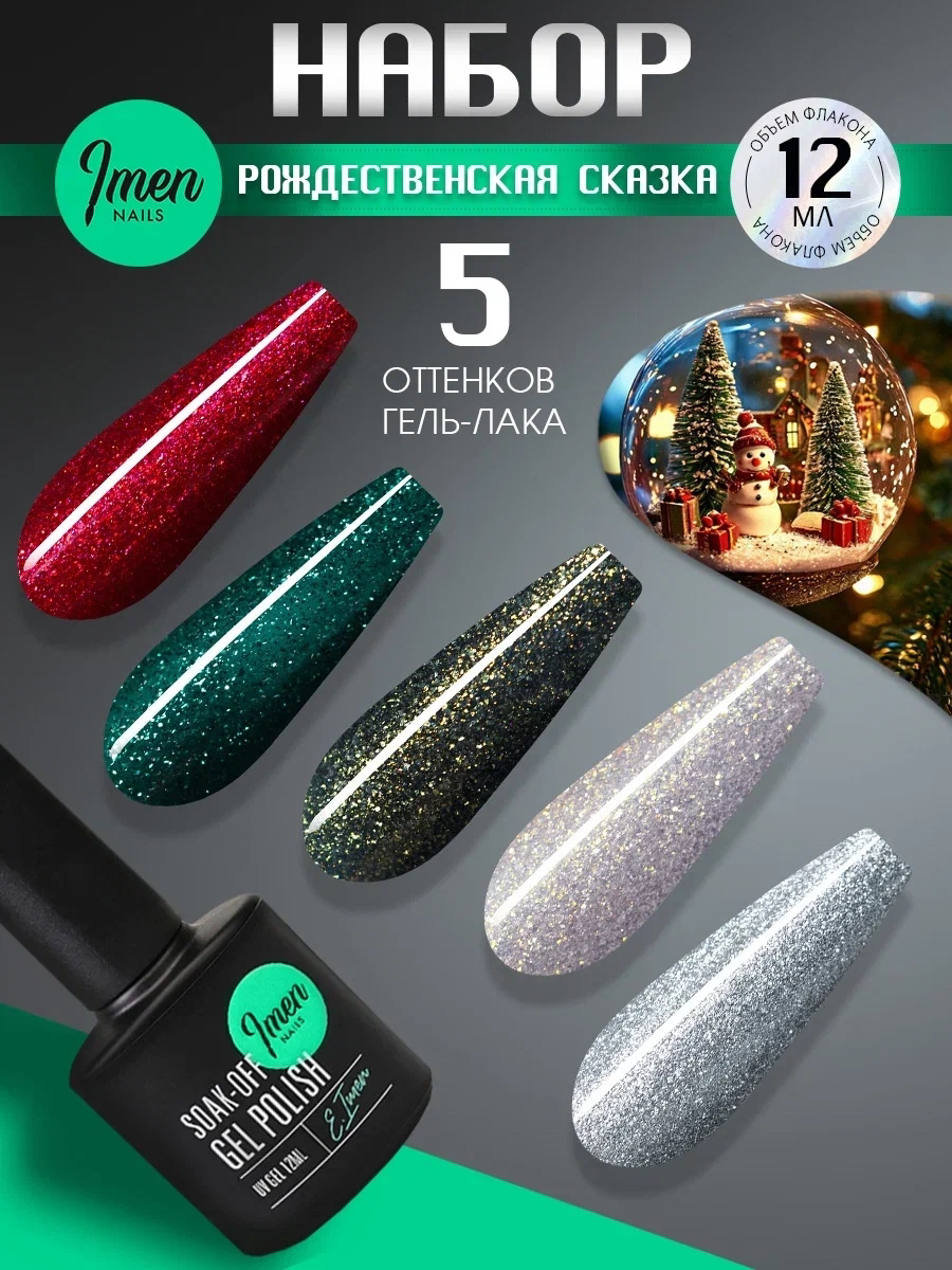 И еще один шикарно подобранный Набор гель-лаков "Рождественская сказка" от Imen ✨5 идеально праздничных оттенков: глубокий красный, насыщенный зелёный, чёрный с золотым шиммером, нежный сиренево-розово блестящий и холодное серебро с плотным сверкающим покрытием для праздничного блеска на ногтях. Почему стоит взять: • Блестящие текстуры создают эффект «праздничного снега» и идеально подходят для вечеринок и новогодних образов; • Комбинации цветов позволяют сделать акцентные и градиентные дизайны; • Удобный объём 12 мл — хватает на много маникюров; •стоимость набора -всегда выгоднее, чем покупать по одному😉 Цена набора 2.250₽