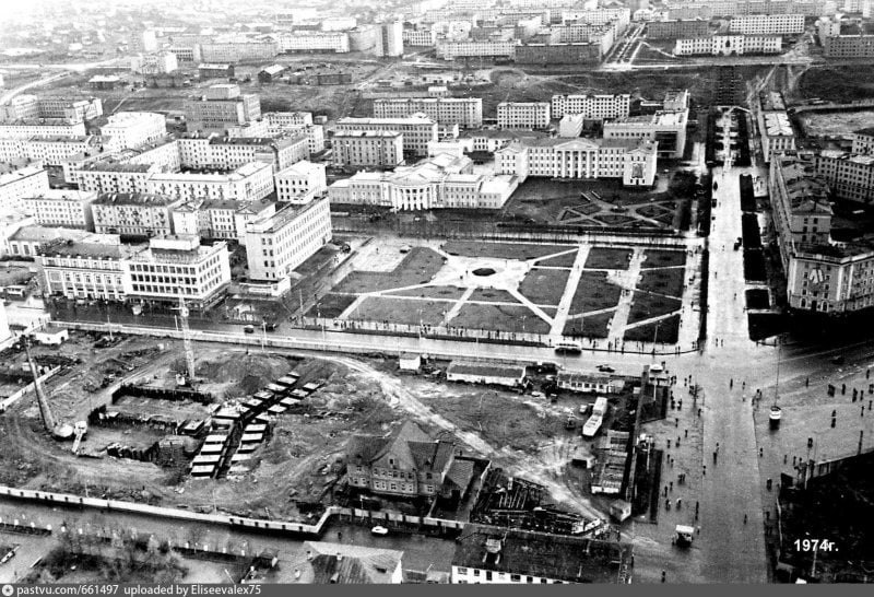 В ответ на пост В принципе, если в Пять Углов по контуру (в нижней левой части кадра) вписать уже построенную гостиницу «Арктику», то обстановка на площади будет примерно такой же, как и в 1974 году. ❄ «Арктический Обозреватель»