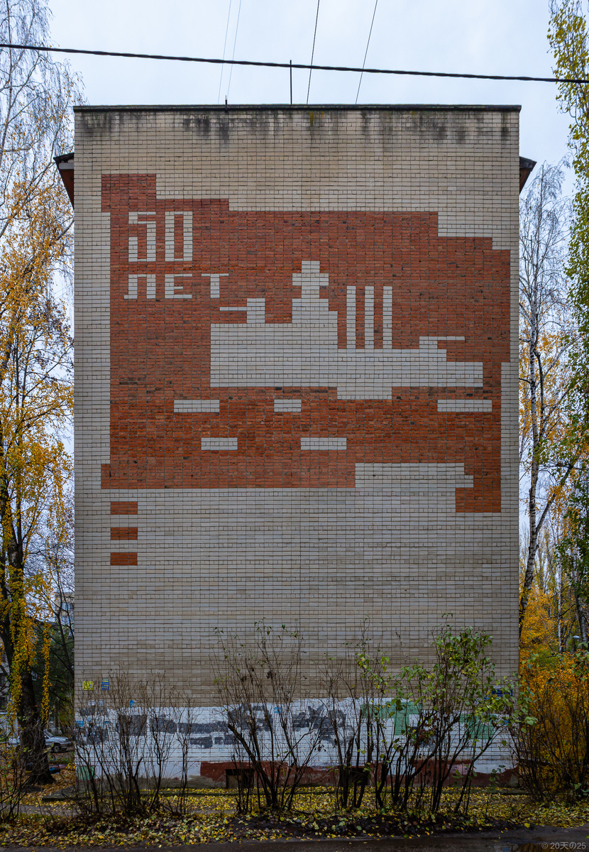 Год создания: 1967 Сохранность: хорошее Автор: Николай Гуненков Адрес: Молодогвардейцев 13 Крейсер «Аврора» стал одним из главных символов Октябрьской революции 1917 года. Выложенное из цветного кирпича изображение крейсера украшает жилой дом №13 на улице Молодогвардейцев. Дом построили в 1967 году, в год 50-летия Октябрьской революции. Автор кирпичной мозаики – архитектор Николай Гуненков.