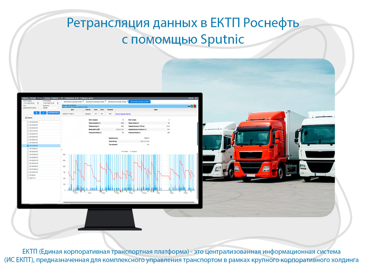 В автопарках нефтегазовой отрасли контроль транспорта - это не формальность, а обязательное условие безопасности и эффективности. В «Роснефти» для этого используется Единая корпоративная транспортная платформа (ЕКТП), куда стекаются данные со всей техники. Чтобы корректно передавать телеметрию в ЕКТП, компаниям часто требуется надежный инструмент - и здесь отлично подходит система Sputnic. • Отечественное решение. Sputnic - российская платформа мониторинга транспорта, работающая на базе ГЛОНАСС-GPS. • Широкие возможности сбора данных. Система собирает координаты, маршруты, историю движения, простои, события и информацию с датчиков - и передает все это в сторонние системы, включая ЕКТП Роснефти. • Поддержка необходимых протоколов. Sputnic работает с форматами, которые требуются корпоративным платформам: EGTS, TracePackets, Wialon IPS и другими. • Совместимость с разными терминалами. Платформа поддерживает устройства Neomatica, Teltonika, GALILEOSKY, Omnicomm и множество других модулей о