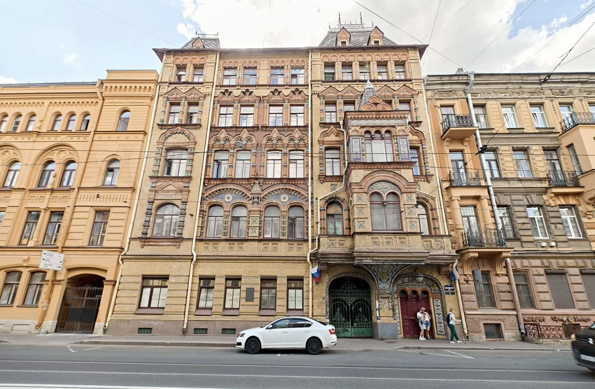 Сегодня я покажу вам по-настоящему уникальную квартиру, которая находится по адресу: Санкт-Петербург, Колокольная ул., 11. И расположена она в одном из самых узнаваемых и самобытных зданий города — в знаменитом Пряничном доме, известном также как «Дом-пряник». Это особенный исторический доходный дом архитектора Никонова Н.Н., который внёс огромный вклад в развитие неорусского стиля конца XIX века. Дом был построен в 1899 году, и его фасад невозможно спутать ни с чем другим. Пёстрый и красочный, он буквально притягивает взгляд: Особой любовью у петербуржцев пользуется парадная, потому что здесь частично сохранились витражи с изображениями кустов черники и других растительных мотивов. Оригинальные дубовые двери, старинные ручки, подлинные номерные знаки — всё это создаёт невероятную атмосферу конца XIX века, когда город рос и украшался такими вот уникальными зданиями. Сегодня Пряничный дом является объектом культурного наследия регионального значения — «Собственный дом Н.Н. Никонова». И