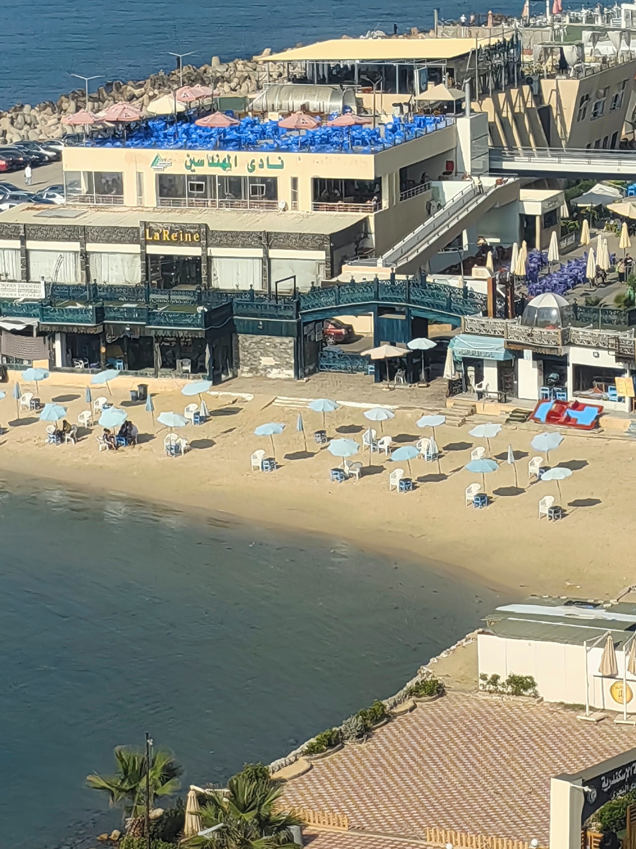Выглянула в окно- на пляже никого, хотя второй час дня. В России или Европе на таких пляжах уже бы царили вайбы хорошего настроения и беспечности, а тут вот так..
