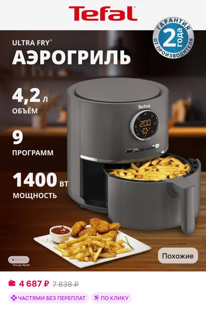 Tefal Аэрогриль электрический Air Fry Ultra EY111B15, 4,2 л https://www.wildberries.ru/catalog/225010275/detail.aspx?size=356609244 ✅ Подписаться 🔣 Бот с промокодами