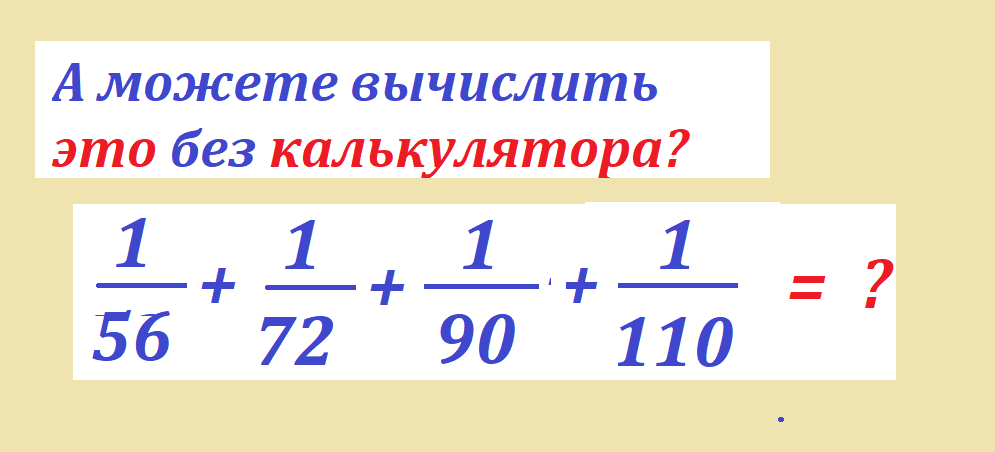 Можете вычислить эту сумму за 1 минуту? 1/72 + 1/90 + 1/110 + 1/132