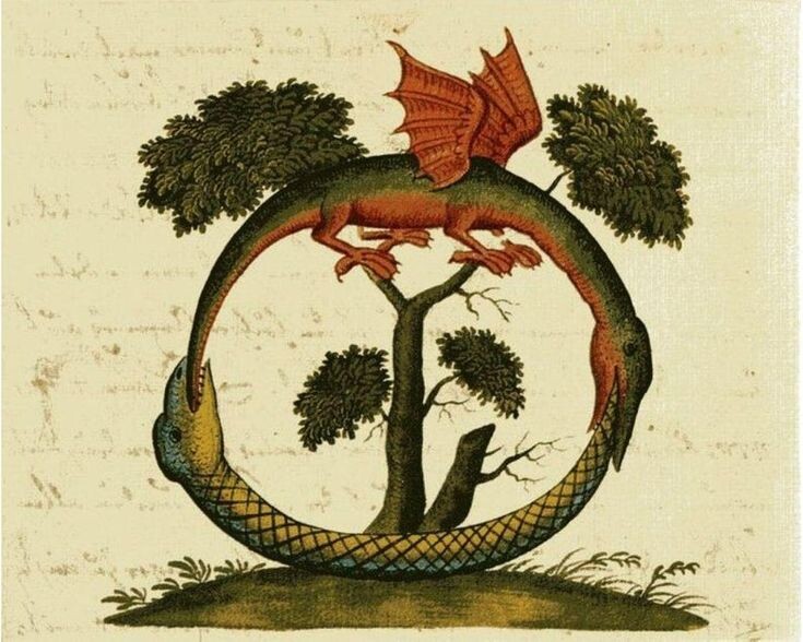 🐉 Я всегда был очарован древними символами, теми архетипами, что пронизывают всю историю человечества, как нити, сотканные в единый ковер. И самый, пожалуй, узнаваемый и гипнотический из них - уроборос. Змей, пожирающий собственный хвост. Кольцо, в котором нет ни начала, ни конца. Он кочевал по культурам и эпохам. В Древнем Египте, более трех тысяч лет назад, его высекали на стенах храмов, как знак вечности и бесконечного цикла жизни и смерти. В Древней Греции, он обозначал процессы без начала и конца. В Китае он, дракон-свинья Чжулун, трансформировался в знак удачи. В Индии - грозный Шеша, тысячеголовый змей, на кольцах тела которого покоятся все планеты Вселенной. В суровых сагах скандинавов - Мидгардсорм, чья гибель в Рагнарёк предвещает и новое рождение мира. Алхимики видели в нем символ трансформации элементов, смерть и возрождение материи в философский камень. Гностики - дуализм света и тьмы, оковы материального мира. Для Юнга это был архетип самой человеческой психики, стадия н