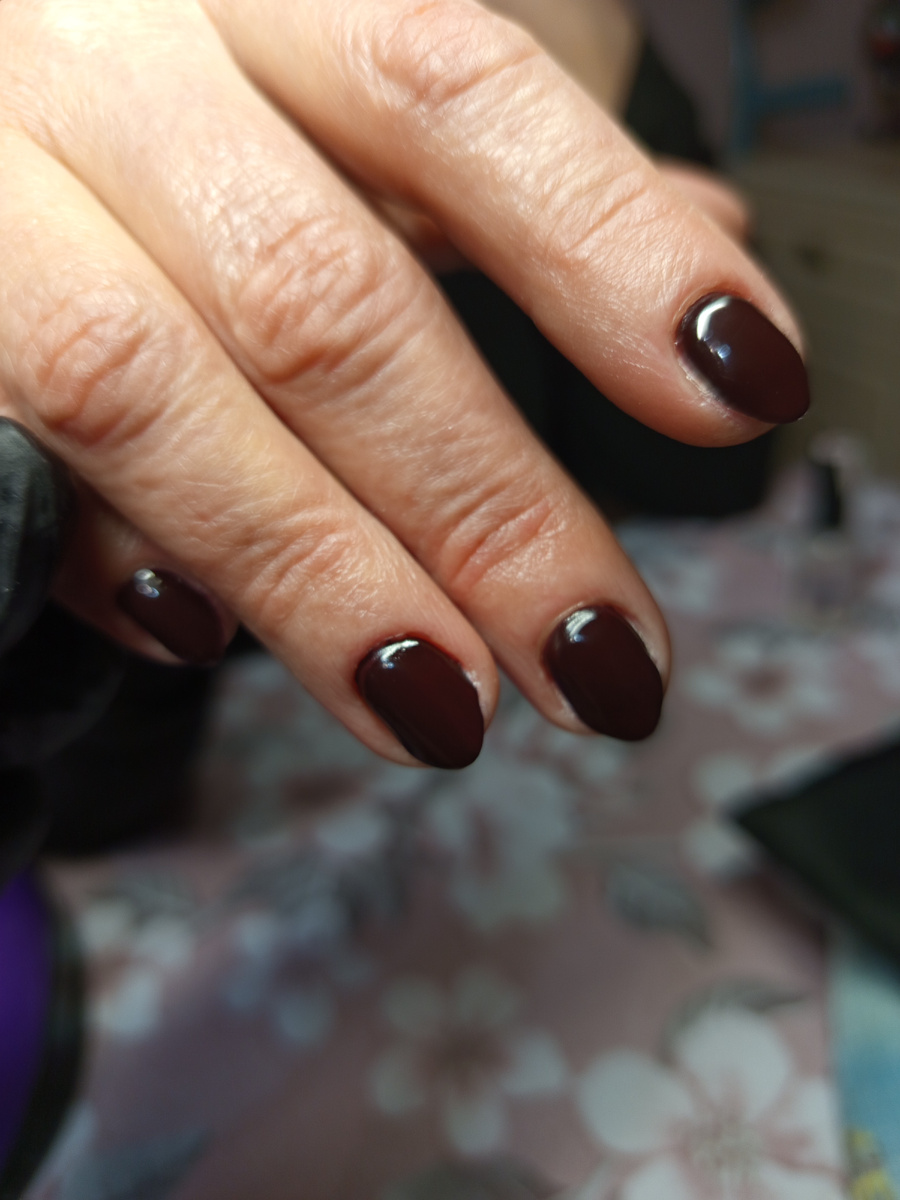 Всем привет! Меня зовут Аня и я - начинающий мастер маникюра. Пишу о своем развитии в профессии от неумехи до топ мастера. Присоединяйтесь! Чем больше контента, тем меньше времени писать статьи ) Что из новостей маникюрных? На прошлой неделе было аж 6 записей. Для меня это прилично! И все клиенты - постоянные. Кроме одной новой девушки. Расскажу обо всех. Итак, в пн была женщина, которая любит вишнёвые цвета. О ней была предыдущая статья. К сожалению, неделю спустя кончики облезли. Не знаю с чем это связано, но надо будет ехать к ней переделывать. Далее был тоже выездной маникюр, на который я потратила кучу времени. Клиентка сама пилит себе ногти, каждый ноготь рассматривает под лупой, трет пальчиком, предварительно смоченным в слюне на каждом этапе. В общем, много косяков, особенно видных под матовым топом, который я использовала впервые. Но нанесение этого цвета уже даётся мне значительно проще. Дальше была моя любимая школьная подружка, которая доверяет мне, несмотря на то, что я н