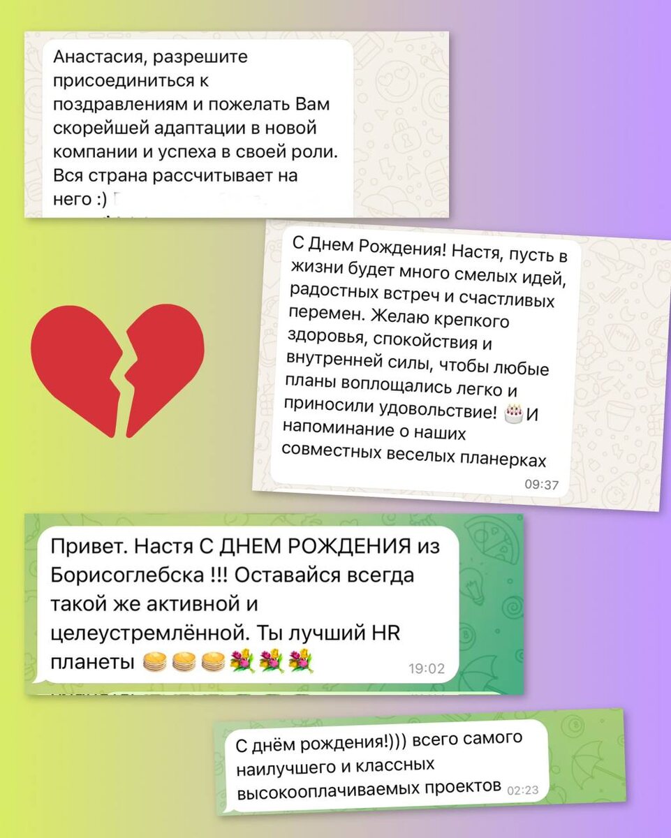 Мои 46🙊 Я очень не люблю свой День рождения, потому что стесняюсь персонального внимания к себе🙈 Для меня всю жизнь приятнее отдавать и помогать другим, делать окружающих более профессиональными и успешными… более счастливыми:) Но попробовала посчитать личные поздравления сегодня - почти 300😊 Помню, люблю, ценю каждого❤️❤️❤️ Отдельные сообщения вызывали совместные воспоминания смеха, ощущение гордости за командный успех… какие-то трогали до накатывающих слез приятной ностальгии и невероятного признания за близость и помощь в самые сложные мои периоды жизни…. Желали здоровья, очередных успехов, прорывов, сбывшихся мечт и запланированных отпусков… счастья, удачи, денег и дачи… любимого Мужчину❤️ Все принимаю и обещаю исполнить в наступившем своем году! Эх, чувствую, что опять будет с огоньком, но надеюсь с шампанским… за успех, за счастье и, конечно же, за Любовь!🥂 Умчала в свой чудесный Новый год! Обещаю оставаться собой и поддерживать образ «Лучшего HR планеты» и оправдать