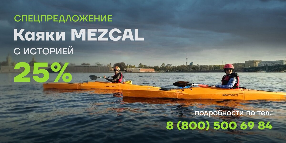 Если вы давно хотели каяк, но вас останавливали вопросы хранения и перевозки, разборной пластиковый каяк Point65 Mezcal GTX решает эти проблемы. Это современный модульный каяк, который разбирается на секции и без труда помещается в обычный легковой автомобиль или кладовку в квартире. Классический цельный каяк занимает много места: нужен гараж, дача или просторная лоджия. Point65 Mezcal устроен иначе. Это делает Mezcal отличным вариантом для жителей города, у кого нет лишнего пространства для габаритной лодки. Несмотря на модульную конструкцию, Point65 Mezcal — это полноценный пластиковый каяк: Каяк подходит для водоемов разного типа: озера, спокойные реки, морские прибрежные зоны. Сейчас в нашем интернет-магазине действует скидка 25% на разборные пластиковые каяки Point65 Mezcal. Это хорошая возможность взять современный каяк по выгодной цене и подготовиться к сезону заранее. Если вы задумывались о покупке каяка, но откладывали из‑за цены или вопросов с хранением и транспортировкой, р