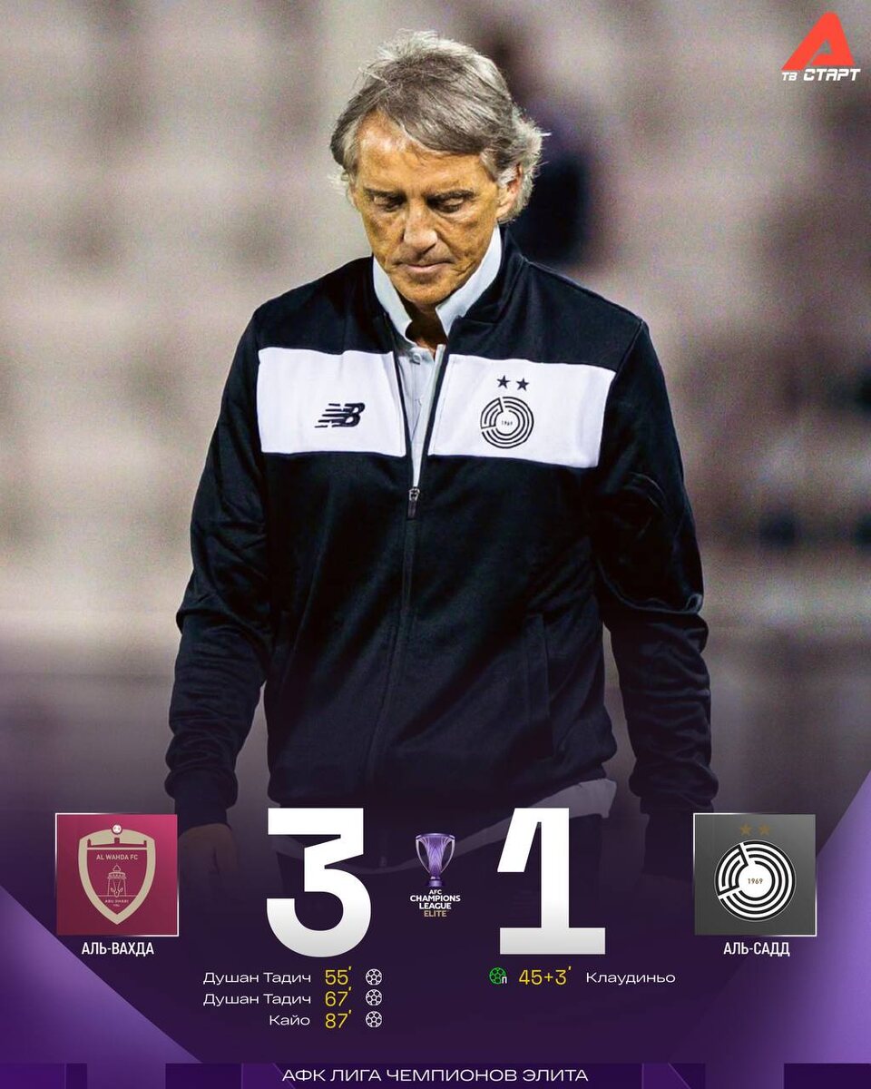 ❌👀Гол Клаудиньо не помог команде Манчини набрать очки в ОАЭ 2+1 от Душана Тадича принесли «Аль-Вахде» победу над «Аль-Саддом»👊 Команда Роберто Манчини отдаляется от зоны плей-офф🫣 🛒 Наше приложение в Google Play 💙 Наше приложение в RuStore 🛒 Наше приложение в App Store