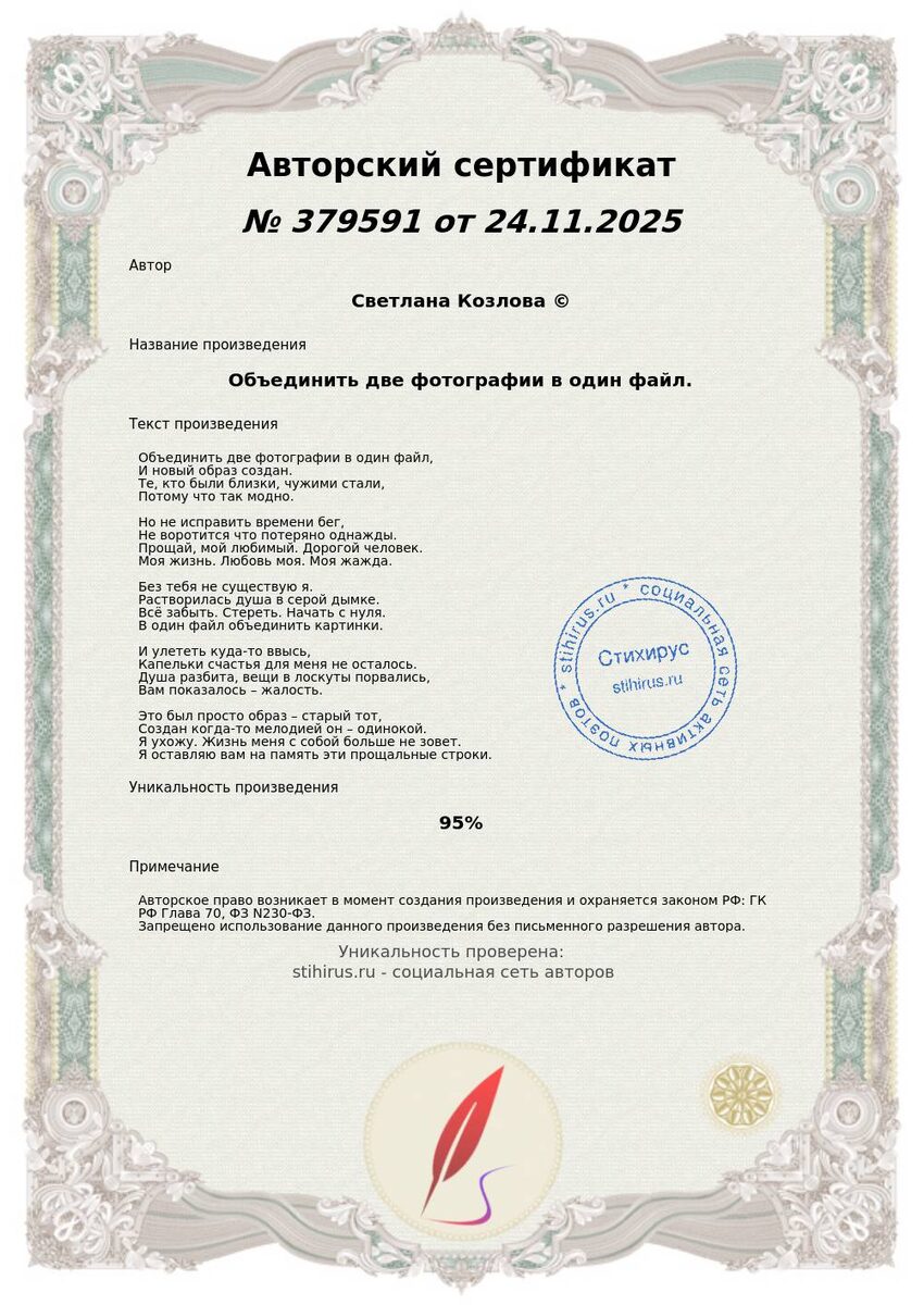 Объединить две фотографии в один файл.