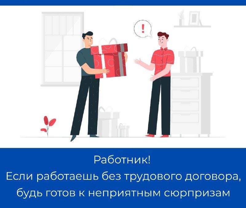 Работник! Если работаешь без трудового договора, будь готов к неприятным сюрпризам ✈️Если трудовой договор не заключён официально, недобросовестный работодатель может: ❌ Задержать выплату зарплаты, выплатить не в полном объеме или вообще лишить её; ❌ Уволить без объяснения причин и не выплатить расчёт при увольнении; ❌ Отказать в предоставлении ежегодного оплачиваемого отпуска и его оплате; ❌ Отказать в гарантиях и компенсациях, в т.ч., в случае травмы на производстве. ❌ Кроме того, этот период работы не будет включён в «трудовой» стаж. 📑Трудовой договор должен быть составлен в письменной форме, в 2-х экземплярах, подписанный обеими сторонами. Иначе, доказывать факт трудовых отношений придется в судебном порядке. ✉️Если трудовой договор не заключен - обратись к работодателю с письменным требованием заключить трудовой договор! ☎️Если Вы вынуждены работать без трудового договора, оформленного в письменной форме, сообщите об этом по телефону «горячей линии» администрации Корсаковско