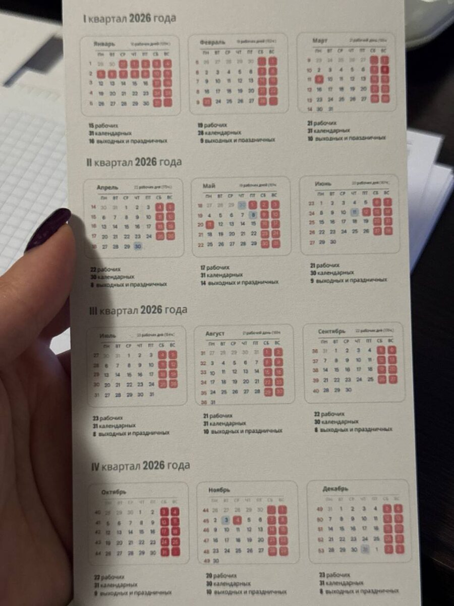 При этом идеальный размер - ежедневник в закрытом виде 190мм*150мм - войдет даже в маленькую сумку (не микро конечно, но в большинство, куда даже В6 и А6 не входят из-за длины. Ах да, и вот такой производственный календарь еще будет в каждом ежедневнике, чтобы легче планировать свои выходные