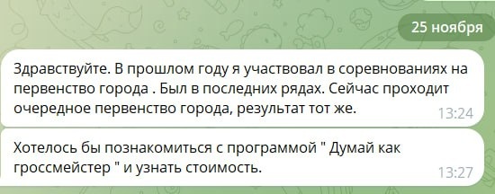 Сегодня получила такое сообщение 👆👇 "Здравствуйте. В прошлом году я участвовал в соревнованиях на первенство города . Был в последних рядах. Сейчас проходит очередное первенство города, результат тот же." Если у вас через год будет важный турнир, подготовку к нему нужно начинать уже сегодня. Эту простую мысль знают все, но только чемпионы каждый день повышают свой уровень игры. Подумайте перед сном, как вам выстроить систему занятий, чтобы через год результат был намного лучше))