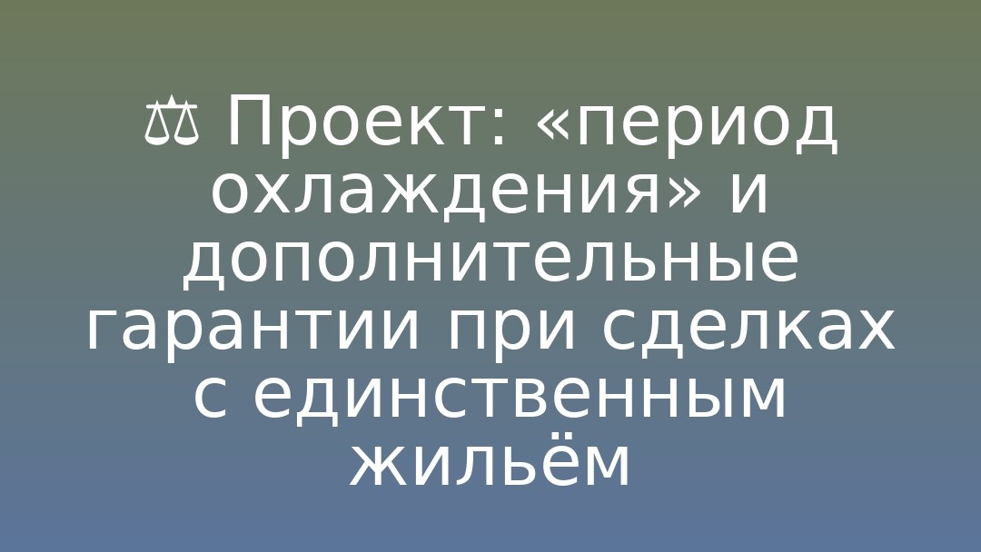 В Госдуму внесён законопроект об изменении порядка регистрации прав на недвижимость. Предусматривается: выплата продавцу средств — только безналично, после госрегистрации перехода права и не ранее чем через 7 дней с даты подписания договора; для продавцов единственного жилья — обязанность предоставить нотариально удостоверенные гарантии проживания у иного собственника. Инициатива направлена на снижение рисков оспаривания сделок.