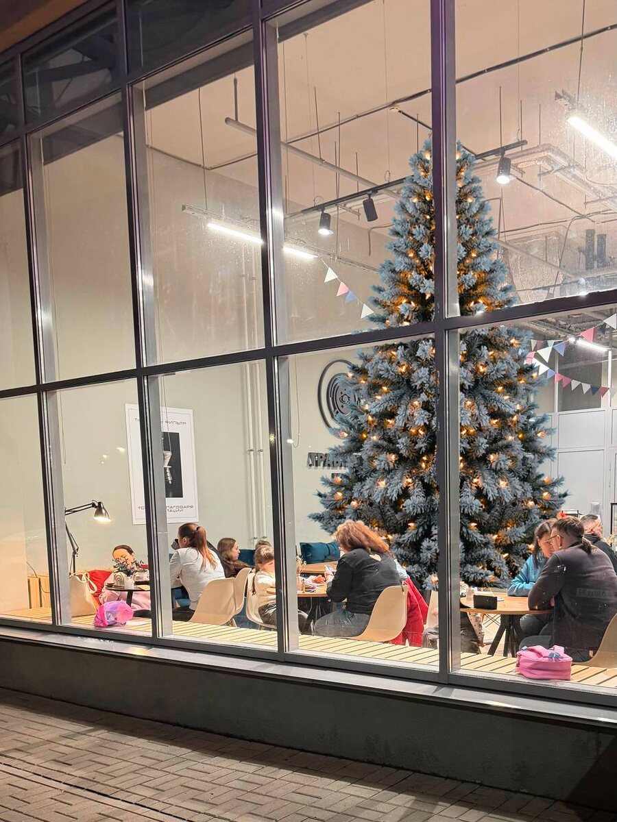 наконец установили ёлку в кофейне хейтеры скажут – фотошоп