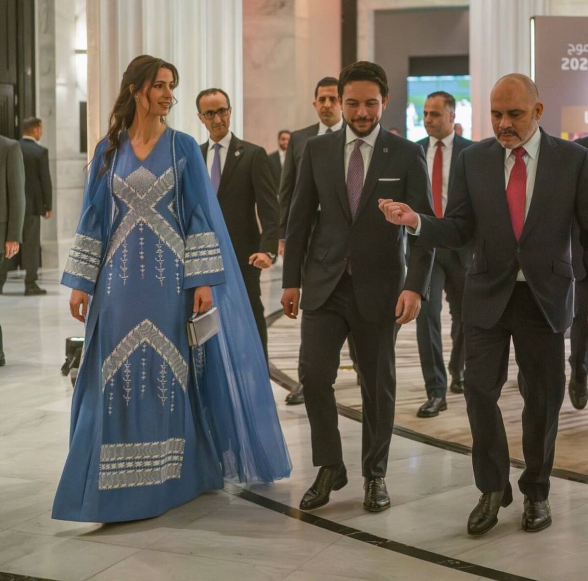Сын королевы Рании кронпринц Хусейн и его супруга принцесса Раджва тоже ведут насыщенные рабочие будни. Будущая королевская чета посетила 75-летие футбольной ассоциации. Принцесса Раджва в этот раз предпочла колоритный национальный наряд. Как вам образ принцессы?