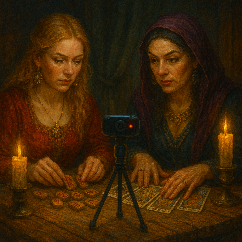 открываешь стрим — и перед тобой десятки “ведуний”, каждая с картами, свечами, оберегами, ритуалами, и все они уверены, что именно у них самый точный инструмент.