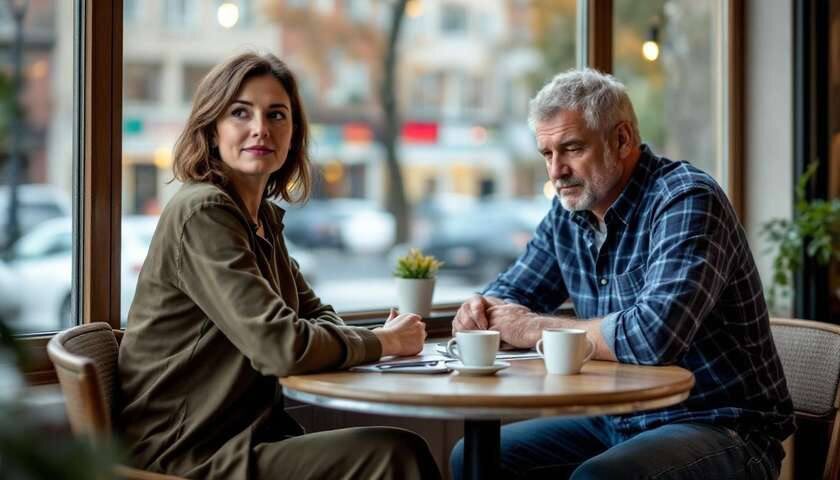 Кафе "У Марьи" выбрала Наталья — нейтральная территория, где не будет воспоминаний об их совместной жизни. Пётр сидел за столиком у окна, и она с удивлением заметила, как он изменился за эти три месяца. Постарел, осунулся, даже рубашка висела на нём мешковато.