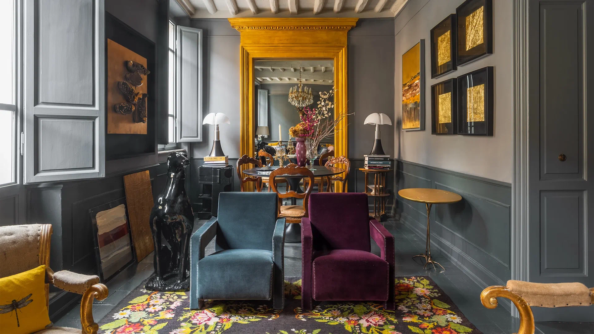 Небольшая квартира без намёка на клаустрофобию: проект Dependance 27 архитектора Стефано Вивиани смело отбрасывает минималистские предрассудки. Он не боится ярких деталей, обилия декора и эклектики, ведь для творцов с воображением не существует слишком маленького пространства. Квартиру, расположенную в Версилии, прозвали «ларцом чудес» — за гармоничную смесь разных эпох и миров, сливающихся в уютный, живой интерьер. Простор создаётся за счёт перепланировки: все внутренние перегородки, кроме несущей стены, были демонтированы. Шкафы изготовлены на заказ и служат не только местом для хранения, но и декоративным фоном — как и буазери на передней стене. В интерьере много состаренных зеркал, которые визуально расширяют пространство и аккуратно скрывают ванную комнату. Основной уют создают предметы мебели и декора от Kartell до Fornasetti, а также антиквариат и сувениры, привезённые из путешествий. Гостиную украшают кресла Cassina's Utrecht, шерстяной ковёр ручной работы с цветочным орнамент