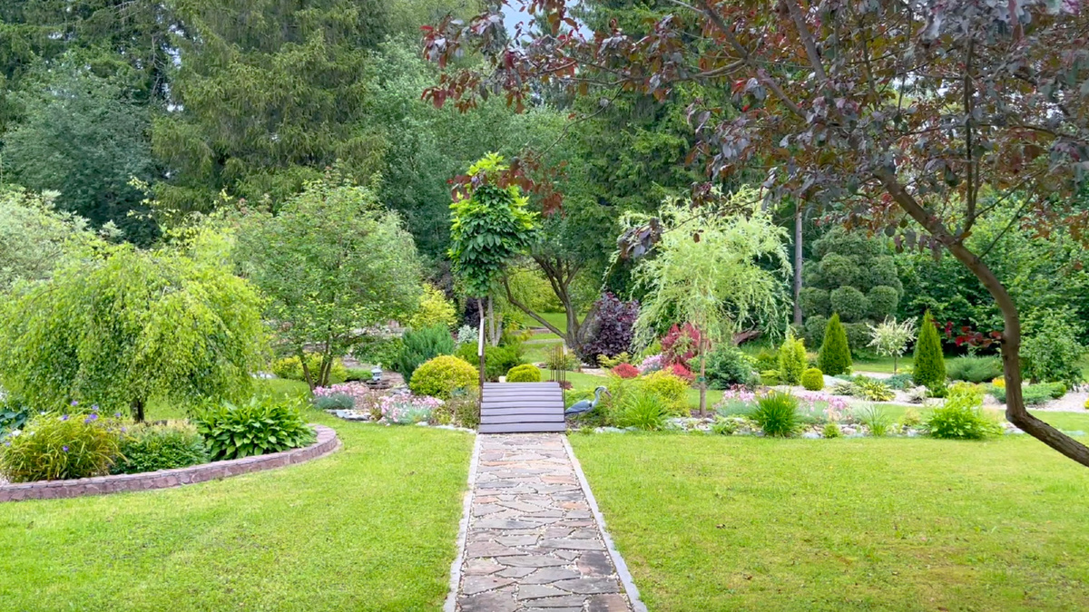 Профессионалы от ландшафтного дизайна советуют не пытаться превратить весь участок в гладкий, аккуратный газон — лучше создать малоуходные сады с местными растениями, которые требуют меньше внимания. В какой-то части я с этим согласна, но перегружать участок растениями тоже не хочется. Клумбы и любые садовые композиции выигрышней смотрятся на фоне аккуратного газона, но здесь важно соблюдать чувство меры. Сплошной газон будет слишком тривиальным, а плотно засаженный растениями сад может потерять перспективу.