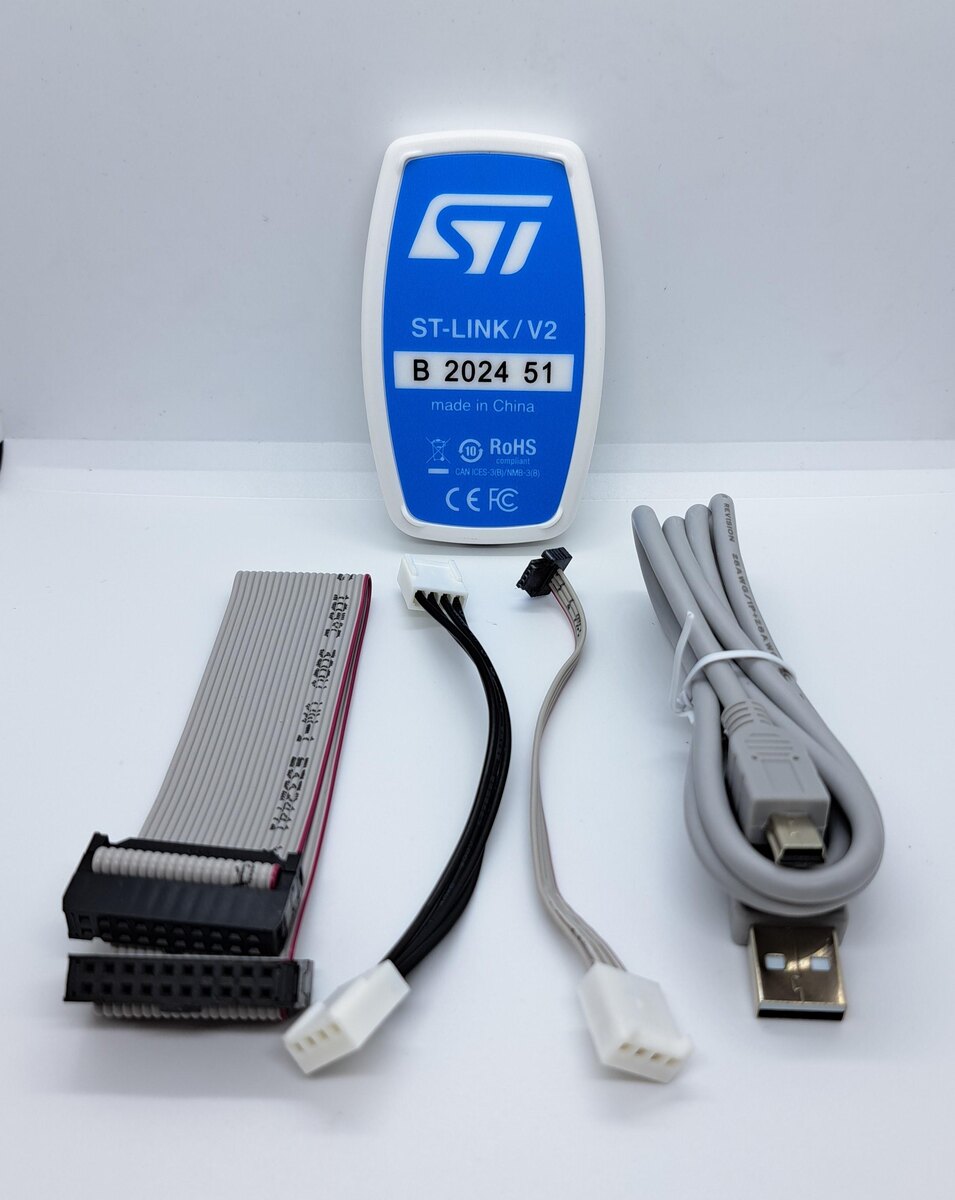 Внутрисхемный программатор ST-LINK/V2 от STMicroelectronics - это компактное и удобное устройство для программирования и отладки микроконтроллеров STM32 и некоторых других микроконтроллеров семейства ARM Cortex-M. Основные характеристики ST-LINK/V2: 1. Поддерживаемые микроконтроллеры: STM8 и STM32 (семейства ARM Cortex-M0, M3, M4, M7 и др.) 2. Интерфейсы подключения: - USB для подключения к ПК; - SWD (Serial Wire Debug) 舒 основной интерфейс отладки и программирования; - JTAG. Функции: Программирование флеш-памяти микроконтроллера; Отладка (debug) с возможностью пошагового выполнения, установки точек останова, просмотра регистров и памяти; Возможность работы с внешними устройствами через интерфейс SWD/JTAG Питание: Питание от USB порта ПК; Совместимость: Поддерживается большинством IDE для STM32, включая STM32CubeIDE, Keil MDK, IAR Embedded Workbench, и др. Применение: Загрузка прошивок в микроконтроллеры STM32 и STM8; Отладка программного обеспечения на уровне исходного кода; Диагно