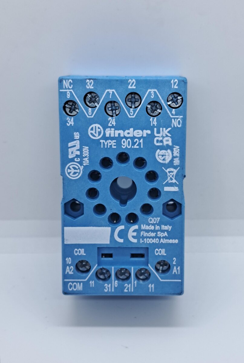 Гнездо реле 90.21SMA от Finder - это аксессуар для монтажа и подключения реле, предназначенный для упрощения установки, замены и обслуживания релейных модулей в системах автоматизации и управления. Finder - итальянская компания, специализирующаяся на производстве реле, таймеров и связанных компонентов для промышленного и бытового применения. Модель 90.21SMA относится к серии гнезд для реле Finder, которые обеспечивают надежное соединение и защиту. Основные характеристики: 1. Тип устройства: Гнездо (socket) для реле, с возможностью быстрой замены реле без необходимости в пайке. 2. Совместимые реле: Подходит для реле Finder, которые часто используются в автоматике. 3. Материал корпуса: Прочный пластик, устойчивый к высоким температурам и механическим воздействиям. 4. Контакты: Винтовые клеммы для подключения проводов. 5. Монтаж: DIN-рейка (стандартная шина для панелей управления) и панельный монтаж с помощью винтов. 6. Номинальное напряжение: До 250 В AC. 7. Номинальный ток: До 10 А. 8.