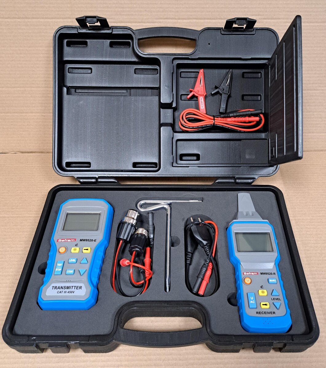 Детектор кабеля MW9520 от SEFRAM - это портативный детектор/локатор подземных кабелей от французской компании SEFRAM, специализирующейся на оборудовании для тестирования и измерений в электронике, энергетике и строительстве. Модель MW9520 предназначена для безопасного обнаружения и локализации электрических кабелей, трубопроводов и металлических конструкций под землей или в стенах, помогая предотвратить аварии при земляных работах. Устройство работает в активном и пассивном режимах, с цифровым дисплеем для точных показаний. Основные характеристики 1. Тип: Портативный кабельный локатор с передатчиком и приемником. Поддерживает обнаружение как живых (энергизированных) кабелей (50 Гц), так и мертвых (неэнергизированных). Режимы: активный (с генерацией сигнала) и пассивный (радиочастотный, для поиска излучений). 2. Электрические параметры: Выходной сигнал - 125кГц. Глубина обнаружения: до 2м (зависит от почвы и сигнала). Точность локализации: 5 см. 3. Корпус ударопрочный (пластик с резино