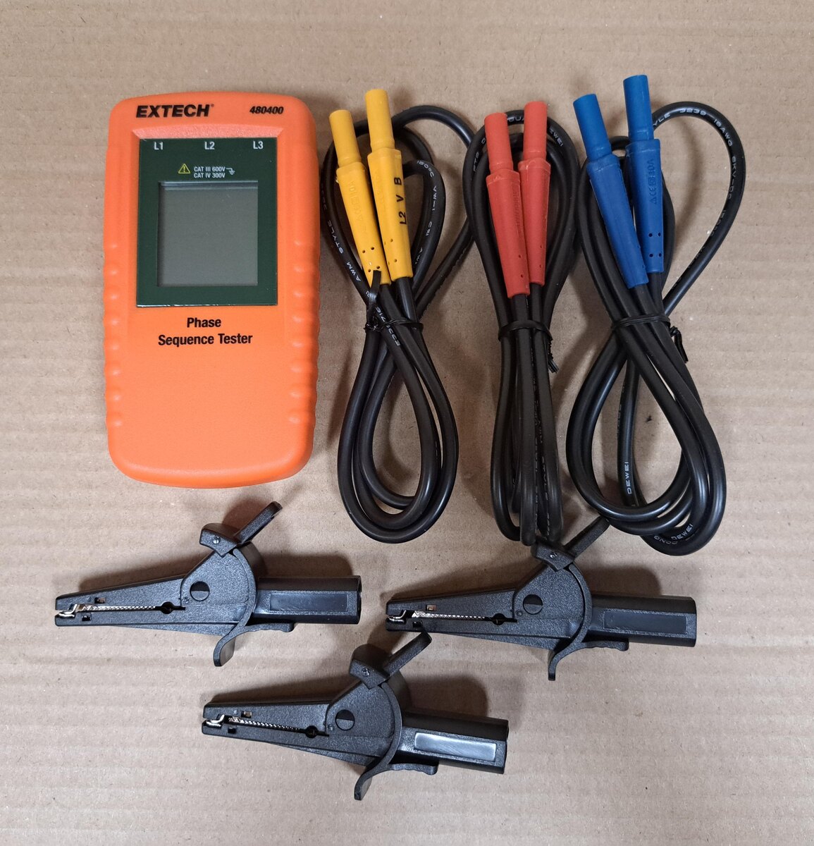 Тестер фазоуказатель 480400 от Extech Instruments - это профессиональный инструмент для электриков и инженеров, предназначенный для проверки и анализа трёхфазных электрических систем. Он помогает определить последовательность фаз (порядок, в котором фазы следуют друг за другом), обнаружить наличие напряжения и выполнить другие тесты, что критично для безопасной работы с электрооборудованием. Основные характеристики 1. Модель: 480400. Это портативный фазоуказатель (phase sequence indicator), часто называемый "тестером последовательности фаз". 2. Функции: - Определение последовательности фаз: Показывает, правильно ли подключены фазы (например, L1-L2-L3 в правильном порядке) с помощью световых индикаторов (зелёный для правильной, красный для обратной последовательности); - Обнаружение фазы: Проверяет наличие напряжения в каждой фазе; - Проверка напряжения: Измеряет напряжение в диапазоне до 600 В (AC); -Дополнительные тесты: Может использоваться для проверки на обрыв фазы, короткое замык