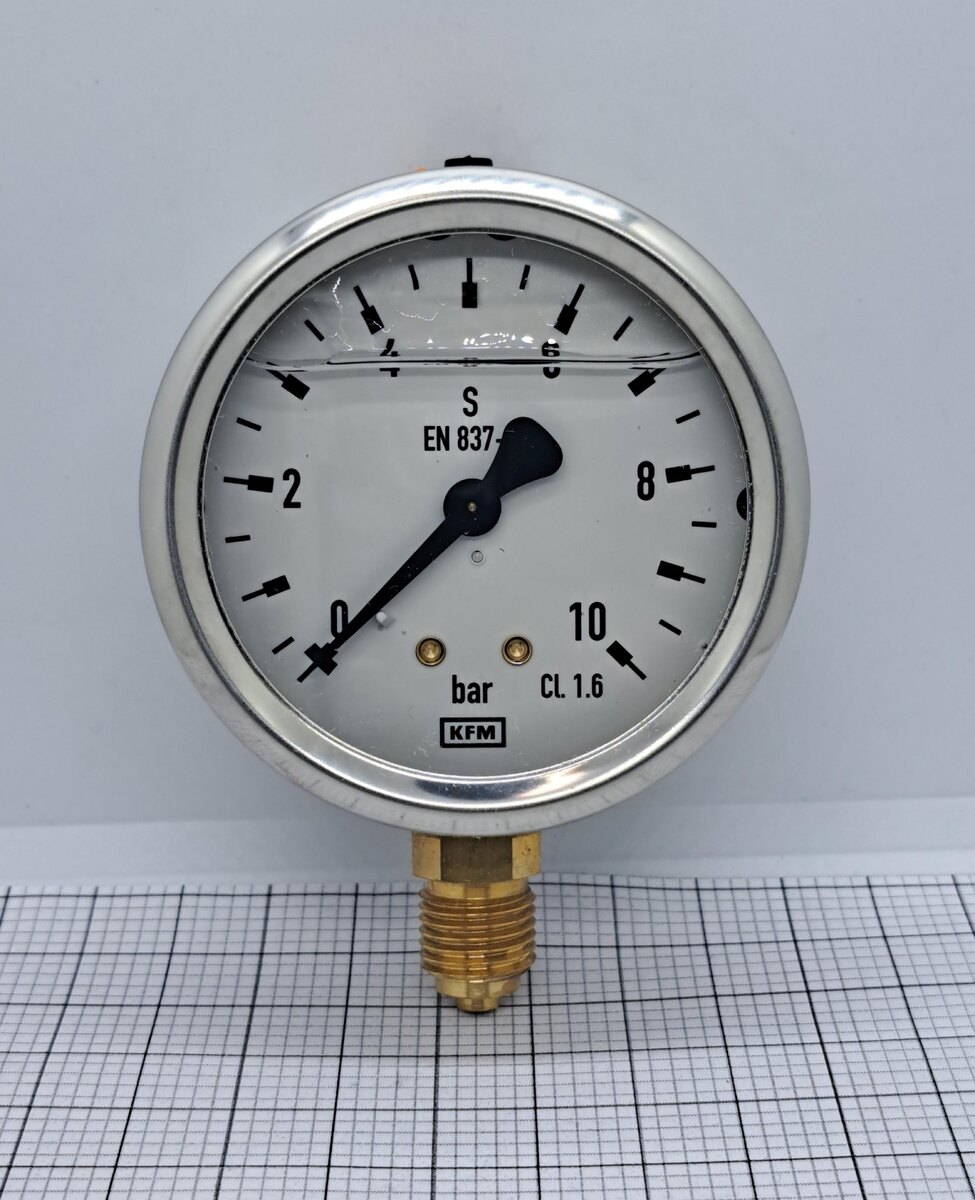 Манометр 7526508 от WIKA - это надёжный прибор для измерения давления, идеальный для точного мониторинга в промышленных и бытовых системах. WIKA - немецкая компания (основана в 1946 году), мировой лидер в датчиках давления, с филиалами в 40+ странах. Модель 7526508 подойдёт для гидравлики, отопления или DIY-проектов, где нужен простой и долговечный измеритель. Это не просто манометр, а гарантия точности и надёжности в любых условиях. Основные характеристики Модель: 7526508 (серия 752 - манометры с трубкой Бурдона, "65" - диаметр 63 мм, "08" - вариант с нержавеющим корпусом и латунным соединением). 2. Тип: Механический манометр с трубкой Бурдона (Bourdon tube pressure gauge) для измерения избыточного давления. Диапазон 0-10 бар (0-145 PSI), класс точности 1.6. 3. Электрические/механические параметры: Рабочая температура -20C до +100C, давление до 1.3x номинала без повреждений. Шкала с делениями, стрелка из алюминия, циферблат белый с чёрными цифрами. 4. Материалы и размеры: Корпус из н