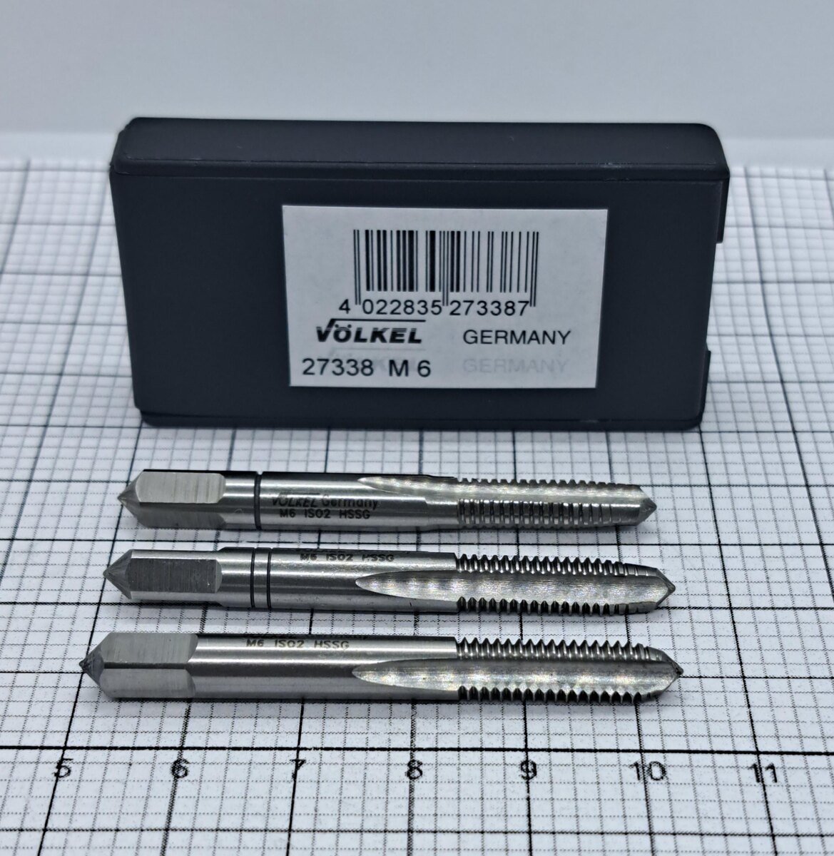 Метчик шлифованный из быстрорежущей стали 27338 от VȔLKEL GmbH (Германия). VȔLKEL - известный производитель высококачественных инструментов для металлообработки, с более чем 100-летним опытом в создании режущих инструментов. Этот метчик является частью ассортимента для точной резьбонарезки. Основные характеристики 1. Тип устройства: Метчик для внутренней резьбонарезки, шлифованный, с прямой канавкой. 2. Серия: 27338 - часть линейки VȔLKEL для стандартных метрических резьб, с оптимизированной геометрией для снижения трения и улучшения отвода стружки. 3. Материал: Быстрорежущая сталь (HSS - High-Speed Steel), закалённая и шлифованная для высокой твёрдости и стойкости к износу. 4. Размеры резьбы: Стандартные метрические M6. 5. Соответствует норме DIN 352. Сферы применения Металлообработка: Нарезка резьбы в деталях машин, автомобильных компонентах и конструкциях; Машиностроение: Производство болтов, гаек и крепежа; ремонт оборудования; Автомобильная промышленность: В двигателях, шасси и с