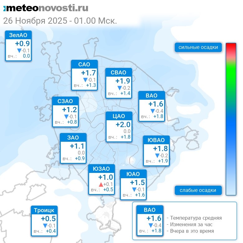 В 1:00 в Москве было от +0.3°C до +2.4°C, средняя температура +1.5°C #погода #Москва #осень #температура #26ноября #среда Перейти на сайт Прогноз погоды на 14 дней