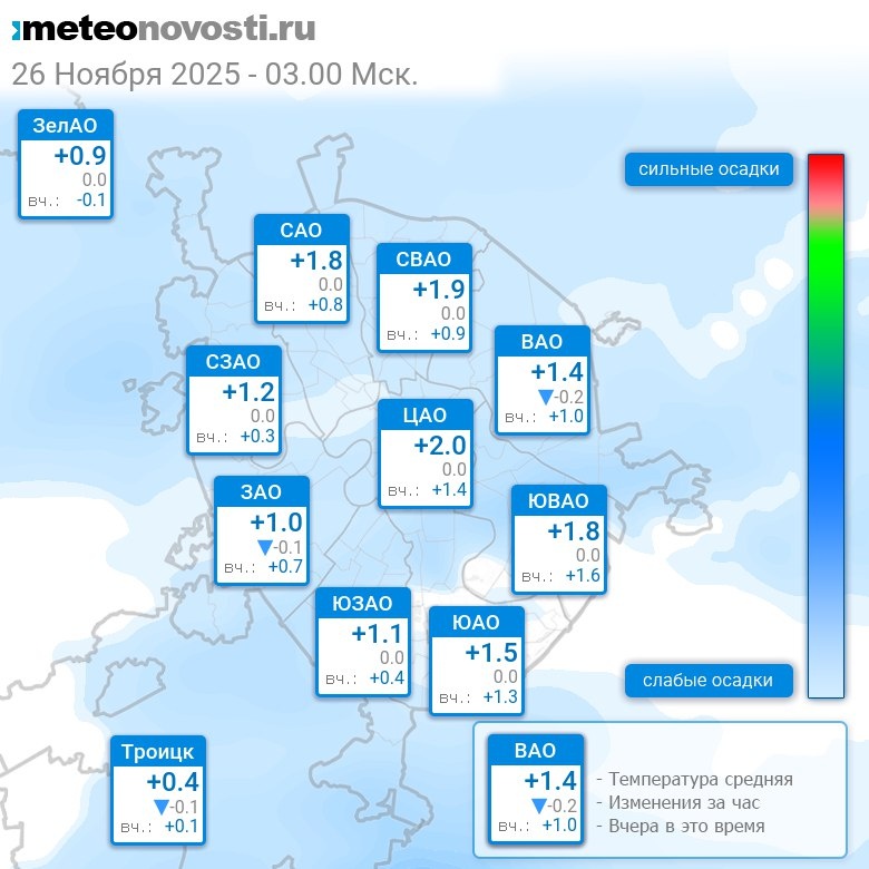 В 3:00 в Москве было от 0°C до +2.2°C, средняя температура +1.5°C #погода #Москва #осень #температура #26ноября #среда Перейти на сайт Прогноз погоды на 14 дней