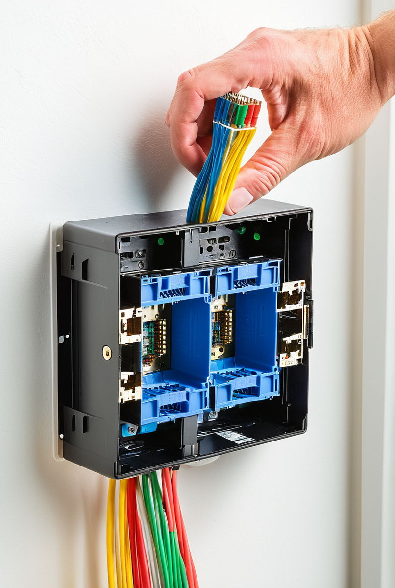 Когда заделка кабеля в каждый из двух модулей Keystone успешно выполнена согласно выбранной цветовой схеме, наступает завершающий этап. Хотя вопрос "как обжать" технически корректнее относится к коннекторам (вилкам), а не розеткам, финальная сборка и монтаж сетевой розетки требуют не меньшей внимательности.