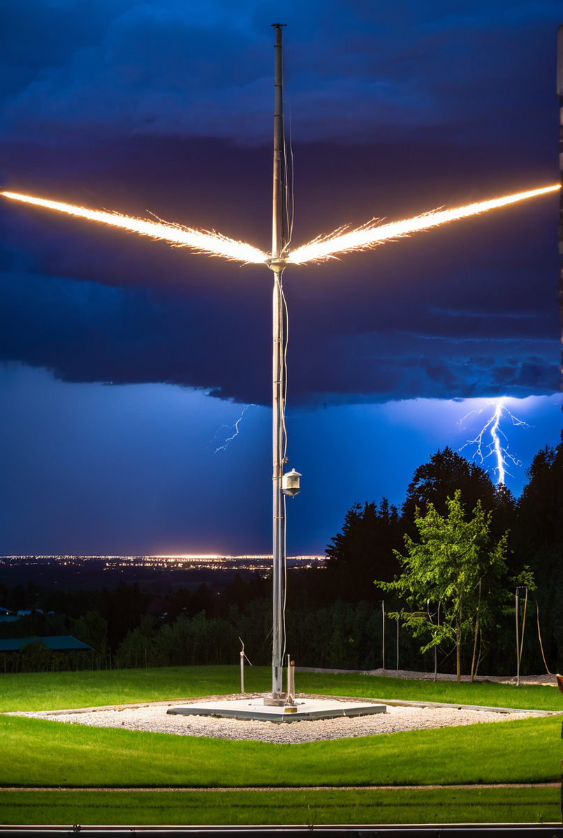 Ключевой этап — верный выбор молниеприемника и точный расчет высоты конструкции. Для отдельно стоящей мачты обычно применяют стержневой молниеприемник (шпиль). Его цель, перехватить грозовой разряд, не допустив его до дома.
