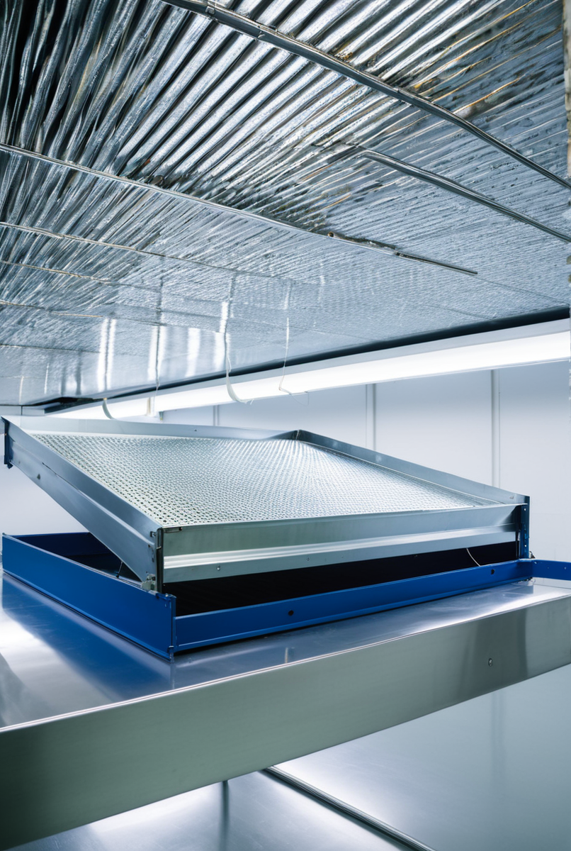 - Пищевое производство и чистые зоны: Для фармацевтических предприятий, лабораторий и пищевых производств гигиена — абсолютный приоритет. Гладкая поверхность сплошного лотка легко очищается и дезинфицируется, а его герметичная конструкция не позволяет пыли и мусору скапливаться внутри и, что еще важнее, высыпаться на продукцию или оборудование.