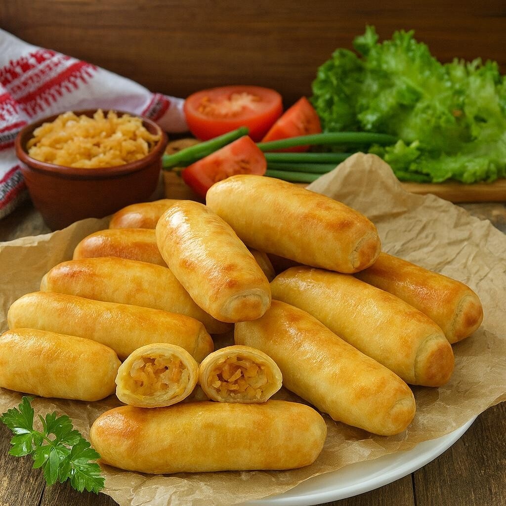 ВЭРЗЭРЕ — ЭТО МОЛДАВСКИЕ ПИРОЖКИ-ТРУБОЧКИ С КАПУСТОЙ, КОТОРЫЕ ПОКОРЯЮТ С ПЕРВОГО УКУСА. 🥟🔥 ХРУСТЯЩЕЕ СЛОИСТОЕ ТЕСТО И СОЧНАЯ НАЧИНКА ДЕЛАЮТ ИХ НЕВЕРОЯТНО ВКУСНЫМИ — СКОЛЬКО НИ ПРИГОТОВЬ, ВСЕГДА МАЛО! 😋 ИНГРЕДИЕНТЫ: ТЕСТО ✅ Вода (тёплая) — 100 г ✅ Растительное масло — 100 г ✅ Соль — ⅓ ч. л. ✅ Мука — 260 г НАЧИНКА ✅ Лук — 1 крупный (полукольцами) ✅ Морковь — 1 шт. (соломкой или на крупной тёрке) ✅ Капуста свежая — 350–400 г (нашинковать) ✅ Соль, перец — по вкусу ✅ Растительное масло — для жарки ✅ Сметана — 1 ст. л. (по желанию) ДОПОЛНИТЕЛЬНО ✅ Яйцо или желток — для смазывания ПРИГОТОВЛЕНИЕ: 1. Смешайте воду, масло и соль, добавьте частями муку и замесите мягкое эластичное тесто. Накройте и оставьте на 30 минут. 2. Для начинки обжарьте лук и морковь, добавьте капусту, приправьте, тушите до мягкости. В конце можно добавить ложку сметаны. Остудите. 3. Разделите тесто на 12 частей, каждую раскатайте в длинный тонкий прямоугольник. 4. На край положите ложку начинки, загните края и с
