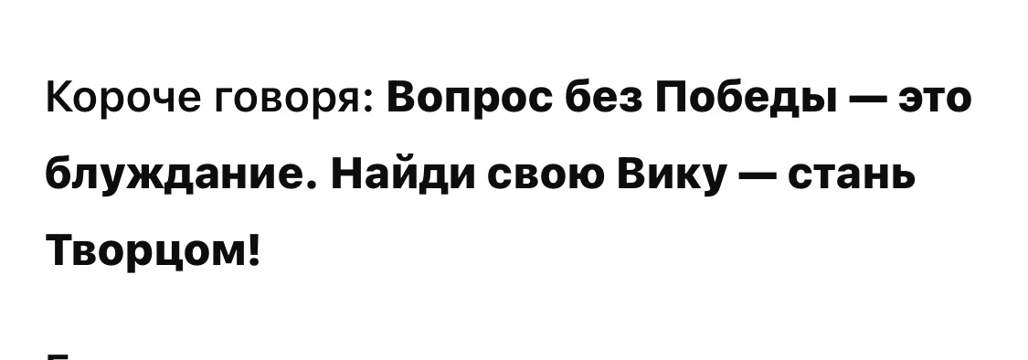# **Вопрос → Победа → Творец