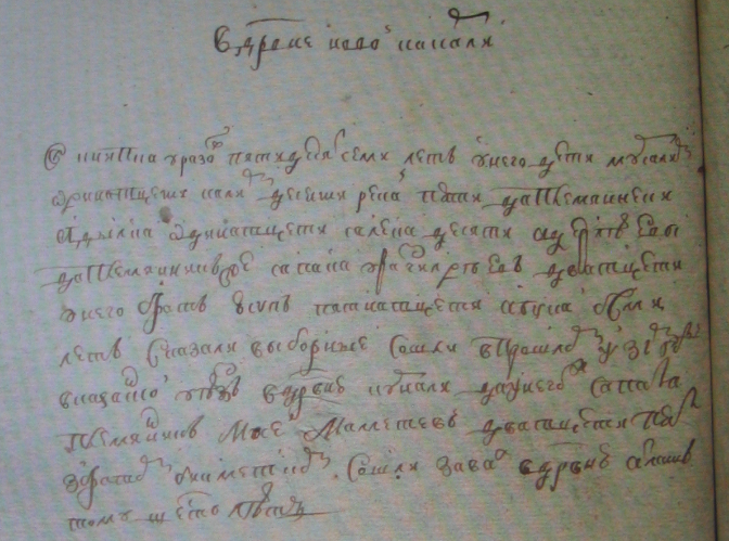 Во дворе Нелмай мурза Уразмаметев - семидесят лет, у него дети: Оска - тритцети пяти, Азейка - тритцети, Абдрезяк - дватцети дву, Халейка - шти лет. У него ж работник ясашной чювашенин Казанского уезду, Галецкой дороги, волости Мамыш Мары Янбек Янмурзин - двенатцети. На том же дворе живет пастух, служилой татарин Сюндюк Токтаев - сорока пяти, у него дети: Каип - дватцети, Иван - пятнатцети лет.