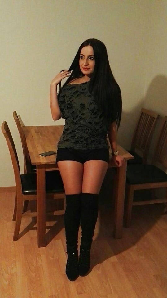 Она небрежно опирается на край деревянного стола, будто позируя для картины старого мастера. Тёмный топ с изысканным узором облегает фигуру, подчёркивая её стройность, а короткие чёрные шорты добавляют образу дерзкую нотку. Высокие сапоги, словно продолжение её грациозных ног, завершают ансамбль, придавая облику немного бунтарства.