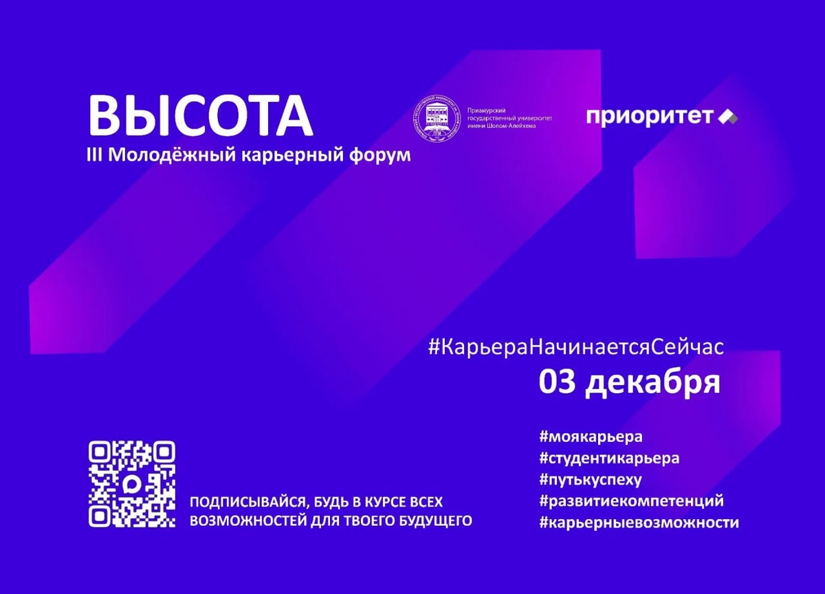 Что, если мы скажем, что за один день ты сможешь... ...превратить свое резюме в магнит для работодателей? ...уверенно отвечать на самые каверзные вопросы на собеседовании? ...и понять, как не провалиться в первые месяцы на новой работе? 3 декабря на карьерном форуме «Высота» это станет реальностью! Мы собрали не теоретиков, а реальных практиков, которые расскажут то, о чем не пишут в учебниках. Никакой воды — только концентрат пользы. Хватит сомневаться в себе! Приходи и получи готовый план для успешного старта. 3 декабря. Регистрация участников с 9:00 до 9:30. ул. Широкая, 70а. Встретимся на «Высоте»! 📲 МАХ #ПГУимША #Приоритет2030
