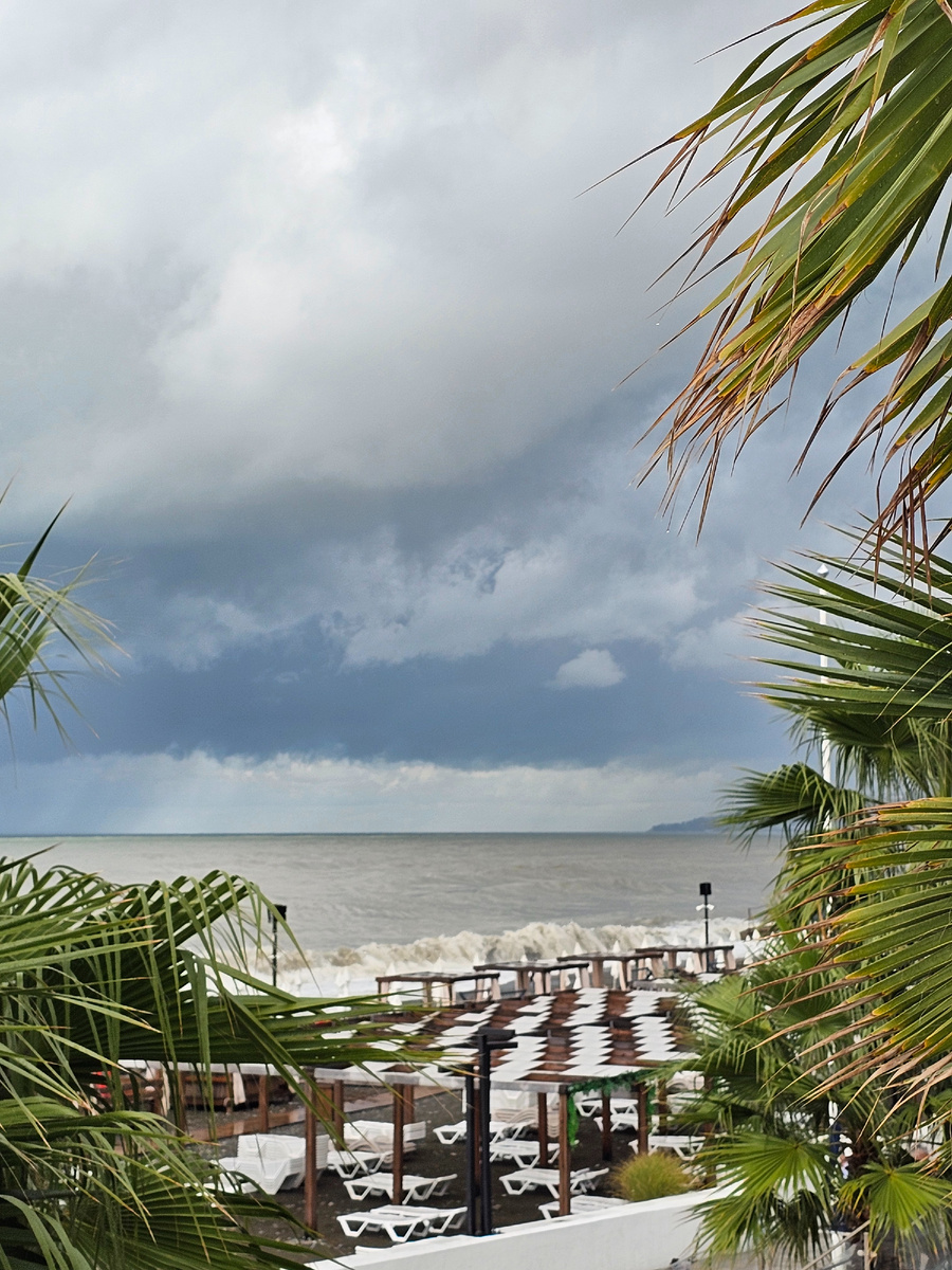 Итак, 11 октября. Мой предпоследний день в Сочи. Дождь все льёт и льёт. Как только появилось окно в небесной канцелярии, я сразу же пошла гулять. Сегодня решила начать с пляжа Ривьера. Вспомнила, что там нет волнорезов и значит волны будут огромными.