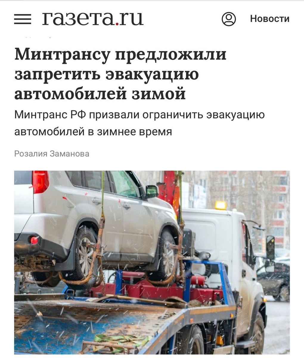 В России предлагают запретить эвакуацию машин зимой — если авто не мешает движению, его трогать нельзя. С такой инициативой в Минтранс обратился директор Института изучения проблем современной политики Антон Орлов. Он напомнил, что зимой эвакуация может оставить человека на улице без телефона, денег, документов и возможности добраться домой — просто потому, что всё это остаётся в машине. Предлагают ввести простое правило: при среднесуточной температуре ниже нуля эвакуировать только те авто, которые реально мешают движению. #зима #авто #закон #этика #новости #Russia #carproblems #tikToknews