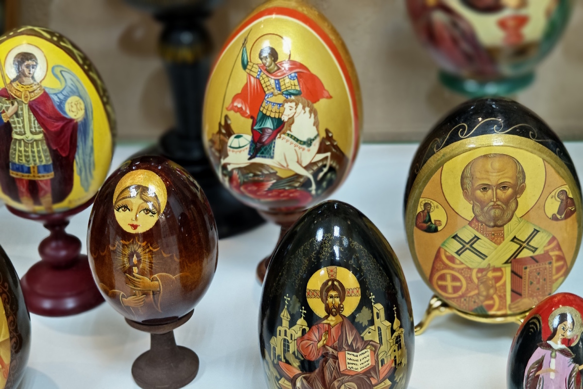 коллекция. Ольга показала мне пару деревянных пасхальных яиц, покрытых