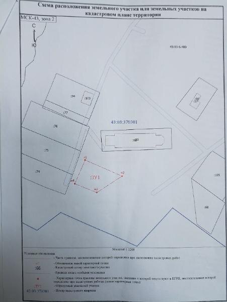 Название: земельный участок с условным кадастровым номером 43:03:370301:ЗУ1, площадью - 897 кв.метров, разрешенное использование – для