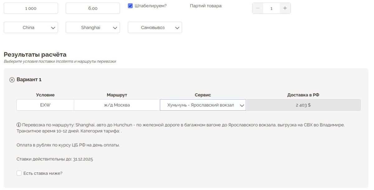 Тарифы, как и прежде, доступны в онлайн калькуляторе в разделе "ж/д Москва" и как альтернативный вариант доставки в разделе "авиа Москва". Кажется, этот сервис позволяет предложить приятные цены для такого транзитного времени доставки в 10-12 дней.