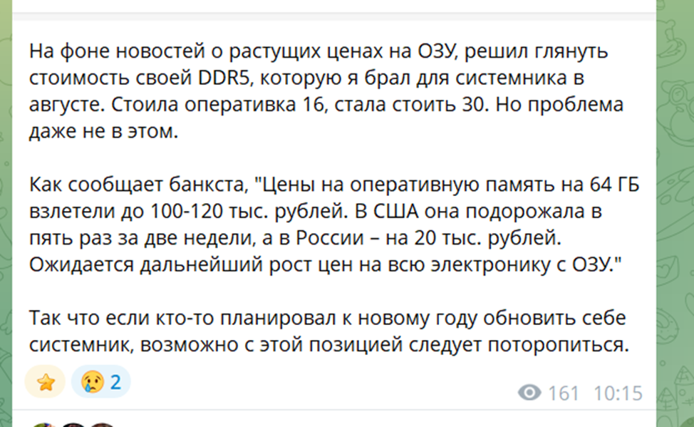 Я тут в своей телеге подсвечиваю тему проблем с оперативкой.