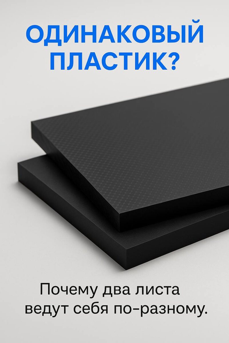 🖥Почему один и тот же пластик может вести себя по-разному? Иногда клиенты спрашивают: «Почему два листа ПНД или ПП выглядят одинаково, но работают по-разному?» Ответ прост — пластик ≠ просто материал. На его свойства влияет гораздо больше факторов, чем кажется на первый взгляд. Вот что реально меняет поведение пластика: 🧬 1) Степень кристалличности Чем она выше — тем материал жёстче и твёрже. Чем ниже — тем он более гибкий. Один и тот же ПНД может быть “резиновым” или “дубовым” в зависимости от структуры. 🔥 2) Температура переработки Пластики — как хлеб: чуть изменил режим — получил совершенно другой результат. Перегрев → ломкость Недогрев → недостаточная прочность ⚖️ 3) Добавки Стабилизаторы, красители, армирующие волокна — меняют ударопрочность, УФ-стойкость, цвет и даже то, как материал «стареет». 🏭 4) Оборудование и производитель Да, технологическая линия тоже влияет. Два листа одного материала с разных заводов — это две разные истории. 💡 Вывод Если вам кажется, что пла