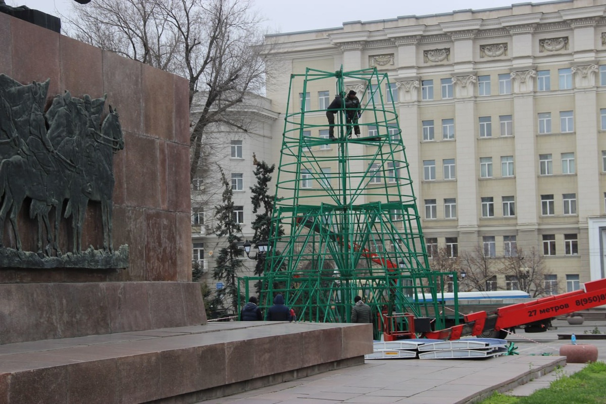 ⚡️ В Ростове начали установку новогодней ёлки на площади Советов, между зданий областной администрации и полпредства президента РФ, перед памятником первоконникам. 🎄 Судя по внушительному каркасу, высота сооружения будет немаленькой. 💥 Зима началась, пошел обратный отсчет до Нового года и Рождества! Фото — (с) «Молот».