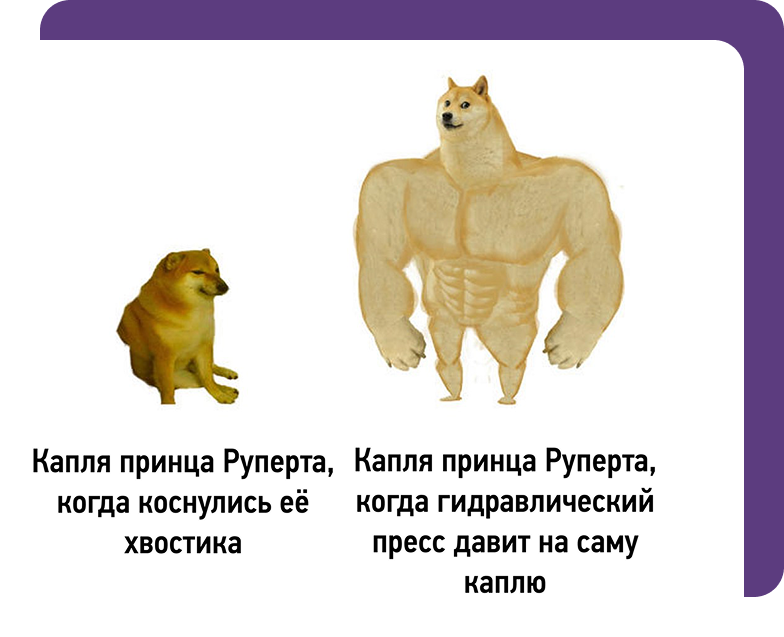 Капли принца Руперта, известные также как батавские слёзки – хвостатые шарики из закалённого стекла. Они получаются, если капнуть расплавленным стеклом в холодную воду. Казалось бы, идея очень проста. Однако капли Руперта обладают неожиданными, контринтуитивными свойствами: они одновременно очень прочны и очень хрупки. Саму каплю невозможно разбить ни молотком, ни другим тяжёлым инструментом, а под гидравлическим прессом капля выдерживает усилие в десятки тонн. Однако если надломить или просто неудачно задеть хвост капли, она тут же разлетается на мелкие осколки. Доподлинно неизвестно, кто первый догадался капнуть в холодную воду расплавленное стекло. Скорее всего, “батавские слёзки” были известны ещё стеклодувам Римской империи. В Европе о них заговорили в XVII веке, а в Британию их привёз в 1660 году принц Рупрехт Пфальцский – в честь которого они и получили название. Уже в 1665 году Роберт Гук описал эксперименты с каплями Руперта, и в последующие столетия они получили распростра